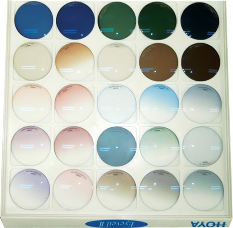착색렌즈란 선글라스에 기본적으로 끼워져 있던 렌즈, 틴트렌즈, 그라데이션렌즈 등을 포함한 색이 변하지 않는 렌즈를 뜻합니다.(사진 참조:진한 색 - 일반적인 선글라스 렌즈/연한 색 - 틴트 렌즈/그라데이션 - 그라데이션 렌즈)